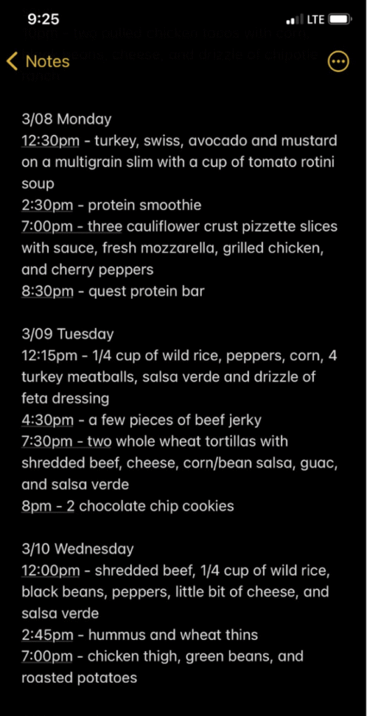 Not much changes from how we eat compared to our friends working on a health and wellness goal. The only thing that we may want to implement to help our performance is something we call Logging and Lookbacks. This is a great way to stay accountable to yourself without having to track calories or macronutrients.