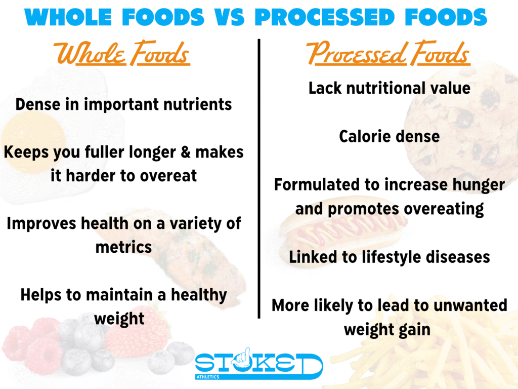 Why nutrient-dense whole foods? Whole foods have more of the nutrients that keep our bodily functions working properly. They fill us up more, making it harder to overeat, harder to gain unwanted weight, and improve our health on a variety of metrics.